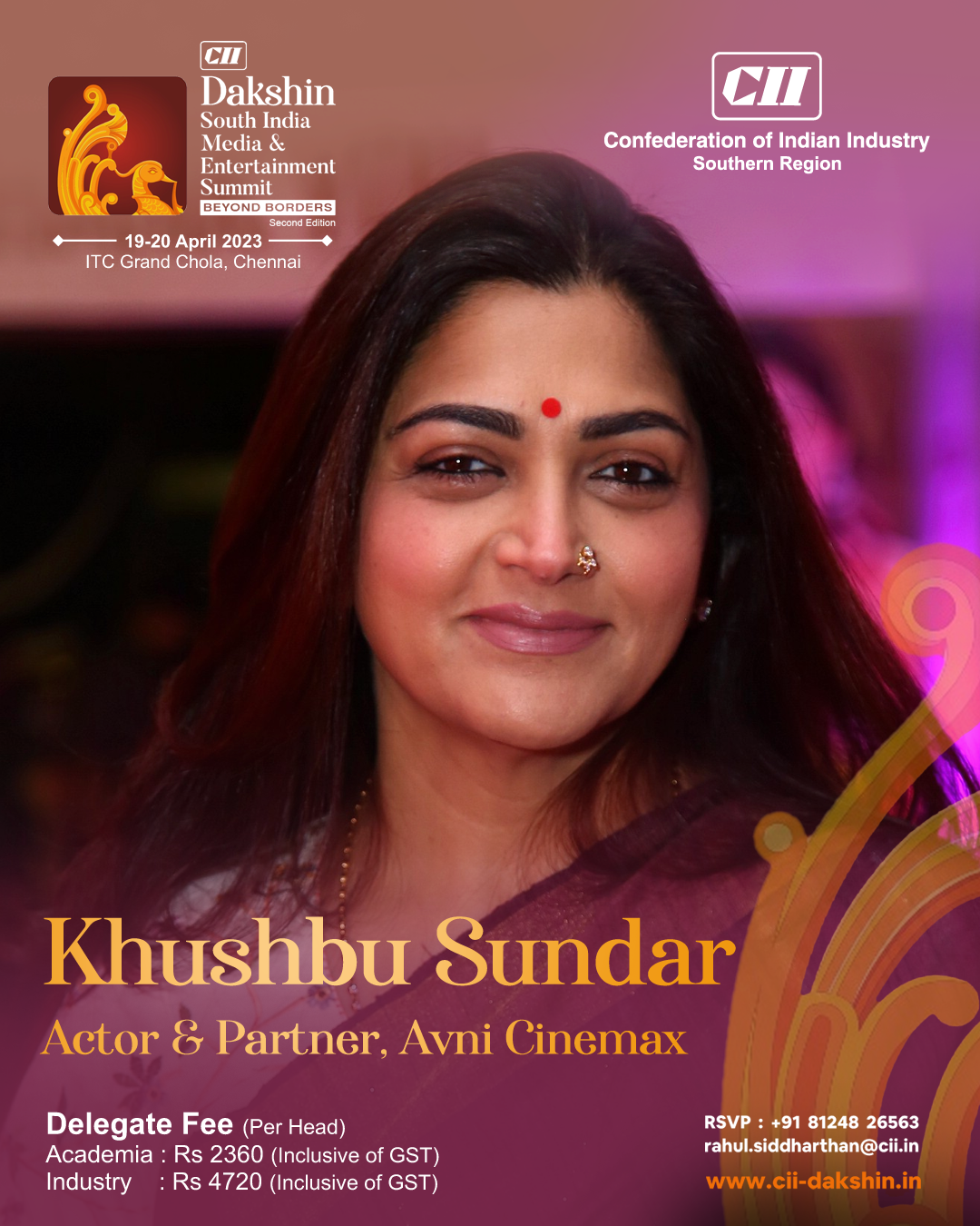 Ms Khushbu Sundar Member of the Steering Committee, Dakshin & Actress, Producer & Television Presenter