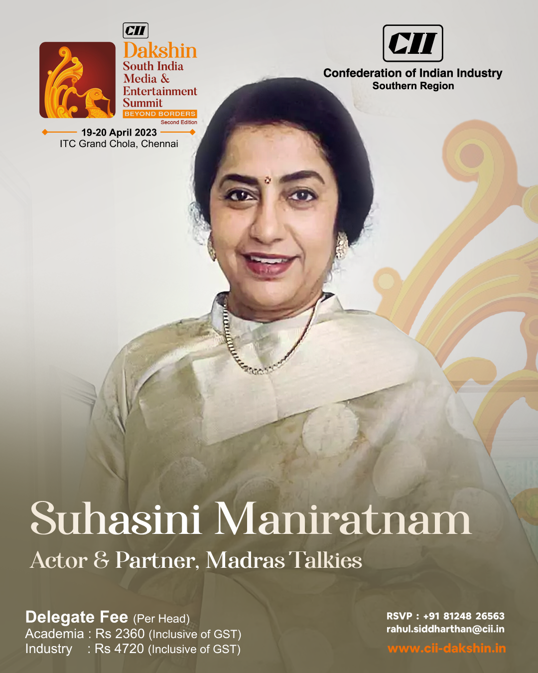 Ms Suhasini Mani Ratnam Member of Steering Committee on CII Dakshin, Partner, Madras Talkies